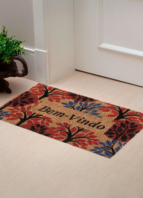 Capacho em 100% Fibra de Coco com base em borracha está disponível no tamanho 33cm x 60cm.